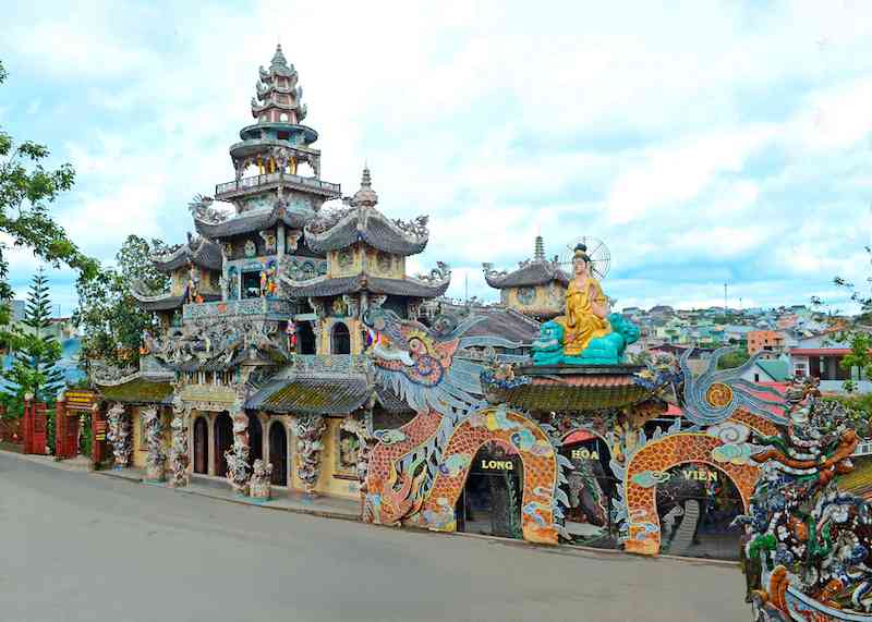 tiếp tục tham quan chùa Ve Chai một trong những ngôi chùa đẹp nhất Đà Lạt.